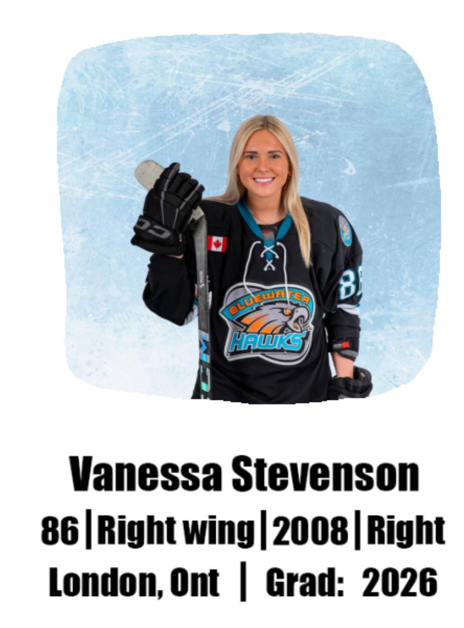 Vanessa Stevenson, Roster, U18AA, U18 (Bluewater Hawks Girls Hockey)