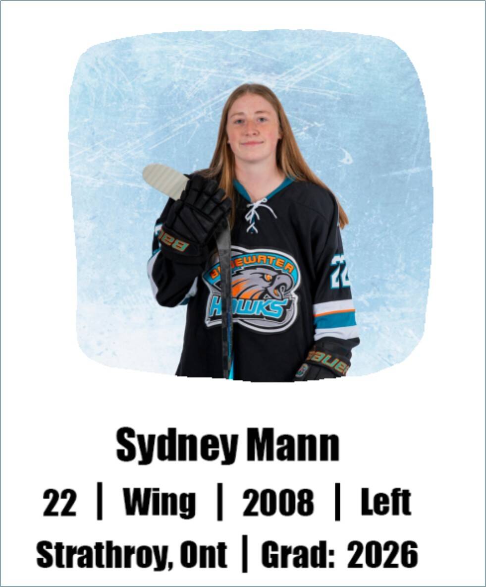 Sydney Mann, Roster, U18AA, U18 (Bluewater Hawks Girls Hockey)