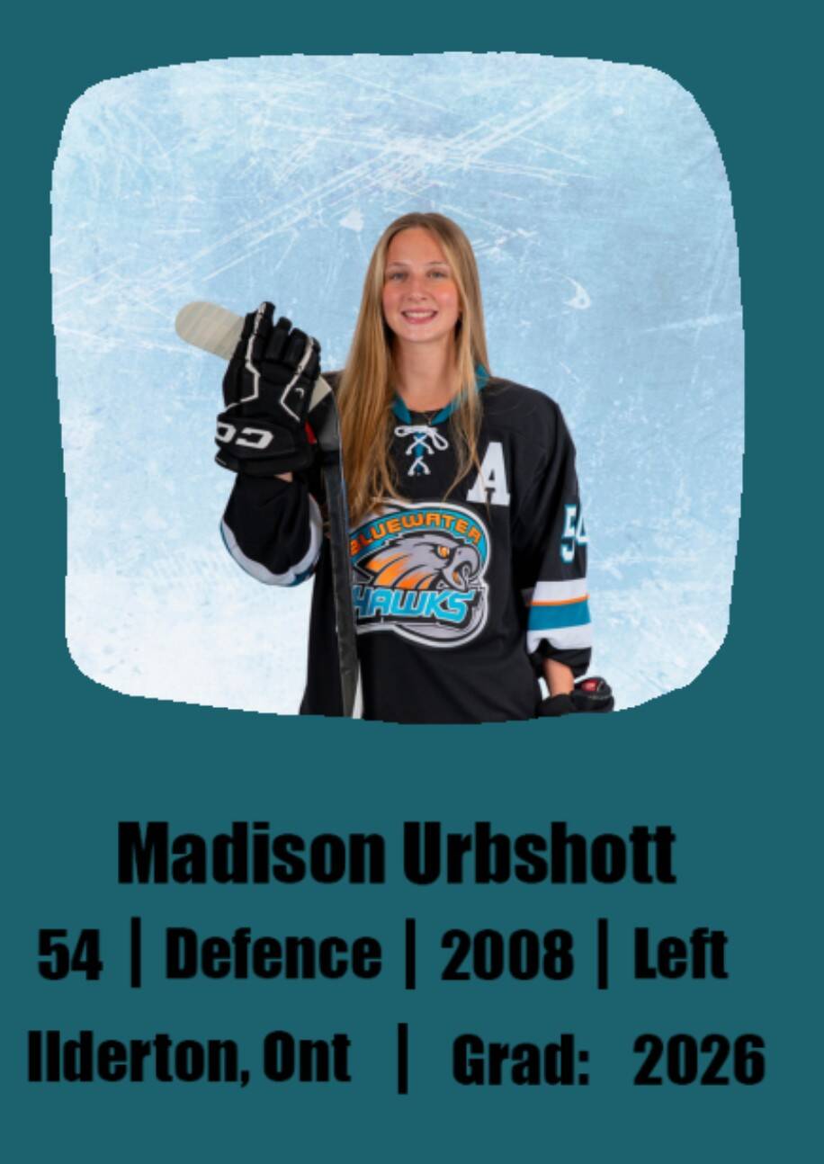 Madison Urbshott, Roster, U18AA, U18 (Bluewater Hawks Girls Hockey)